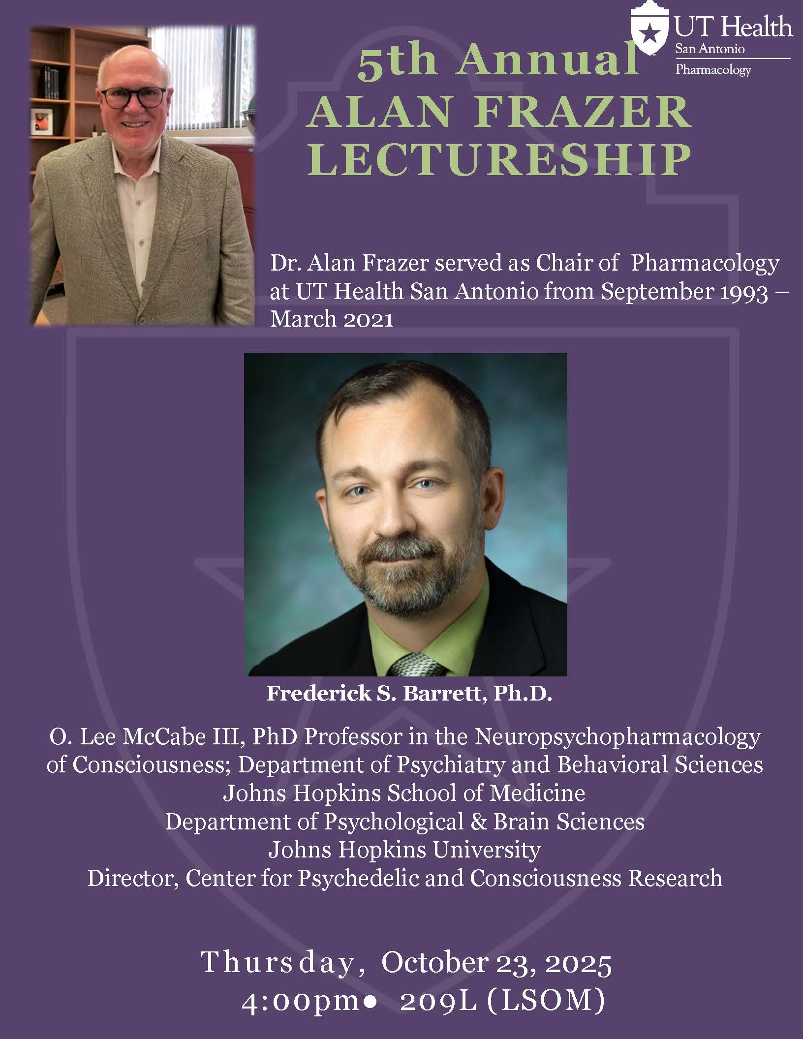 5th Annual Alan Frazer Lectureship – Frederick S. Barrett, Ph.D.