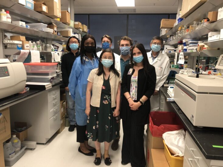 Manaal Anjum Salman (SURF/UTHSA student), Trinity Xena Erales (SURF/UTHSA Student), Moraima Andrea Rodriguez Guerrero (SURF/UTHSA Student), Steven Blake Smithson (PMM student), Dr. Guannan Li, Alain-Christian Philippe Courtines (Undergraduate student), Dr. Qinggong Ping, Maria Alejandra (Ale) Ochoa (PMM student), Krupa D Amerineni (NISD student), Jennifer Adjei-Mosi (PMM student).